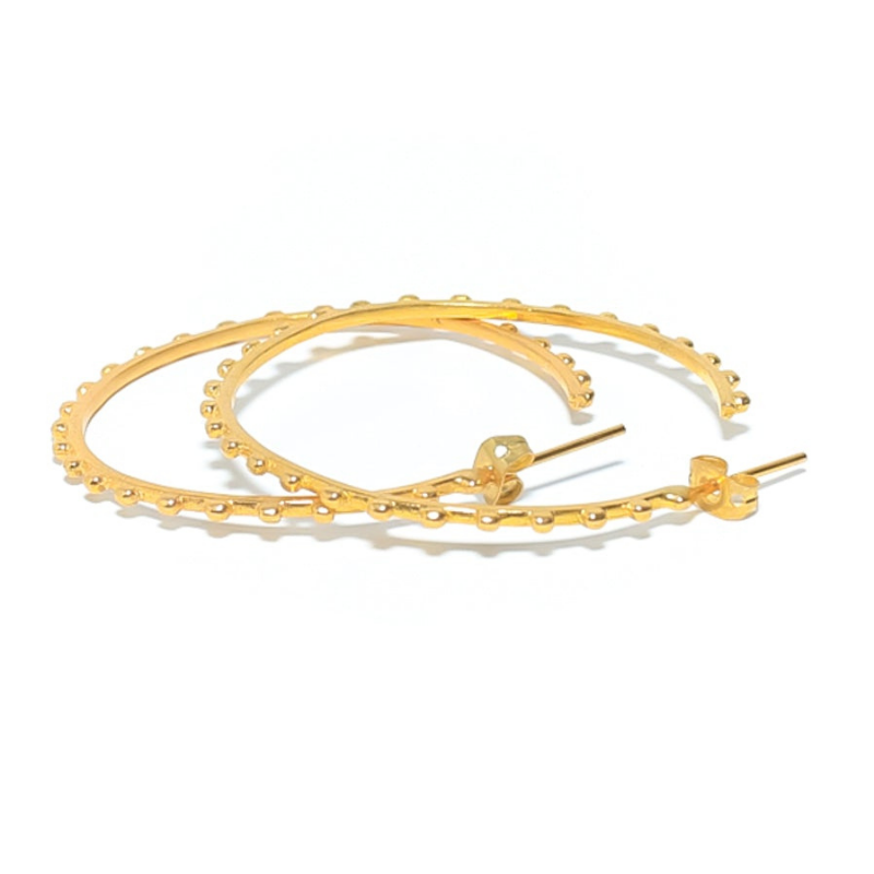 A unique blend of high quality plating and handcrafted details, these large hoop earrings add character and will bring a statement touch to your everyday looks. Hoops never go out of style and they are so versatile.